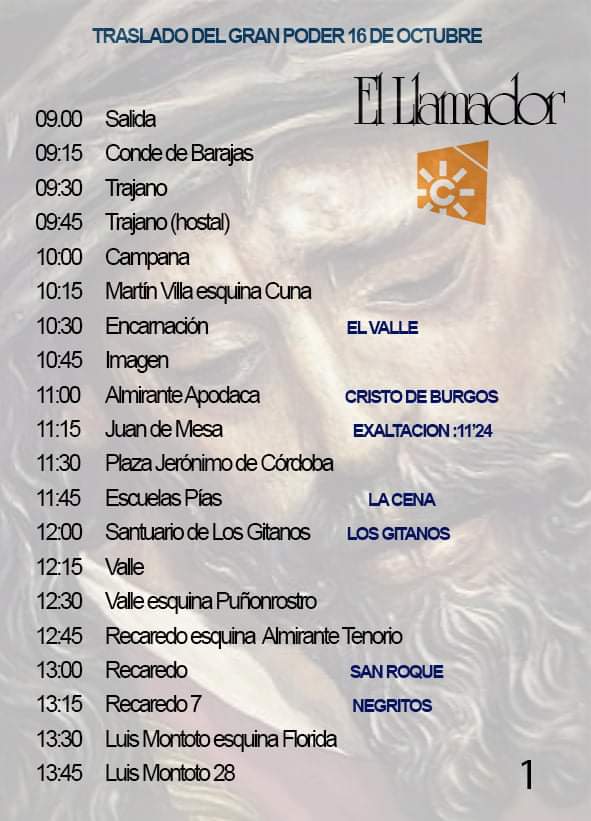 • Itinerario del traslado del Señor del Gran Poder a la Parroquia de la Blanca Paloma