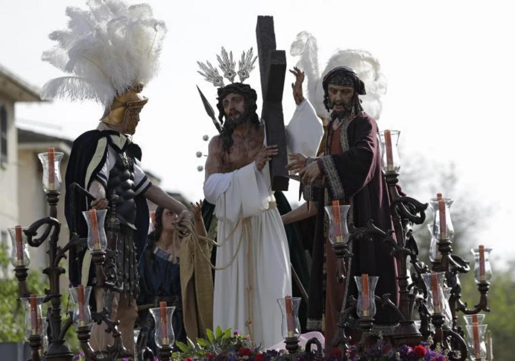 En Rochelambert, la agrupación parroquial Paz y Misericordia completará el mapa de la devoción periférica, mientras que en Triana, la Hermandad de Pasión y Muerte pondrá el acento más sobrio y recogido con su crucificado en silencio por las calles del viejo arrabal, desde San Juan Bosco hasta Santa Ana, cobijada por la calidez salesiana.