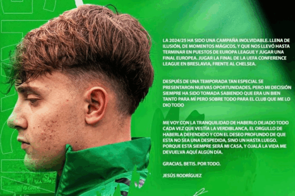 El Real Betis ha hecho oficial la salida de Jesús Rodríguez, una de las grandes joyas de su cantera, que pone rumbo al Como 1907, el ambicioso proyecto italiano liderado por Cesc Fàbregas. La operación, valorada en 25 millones de euros más variables, marca un hito en la trayectoria del joven atacante de 19 años,…